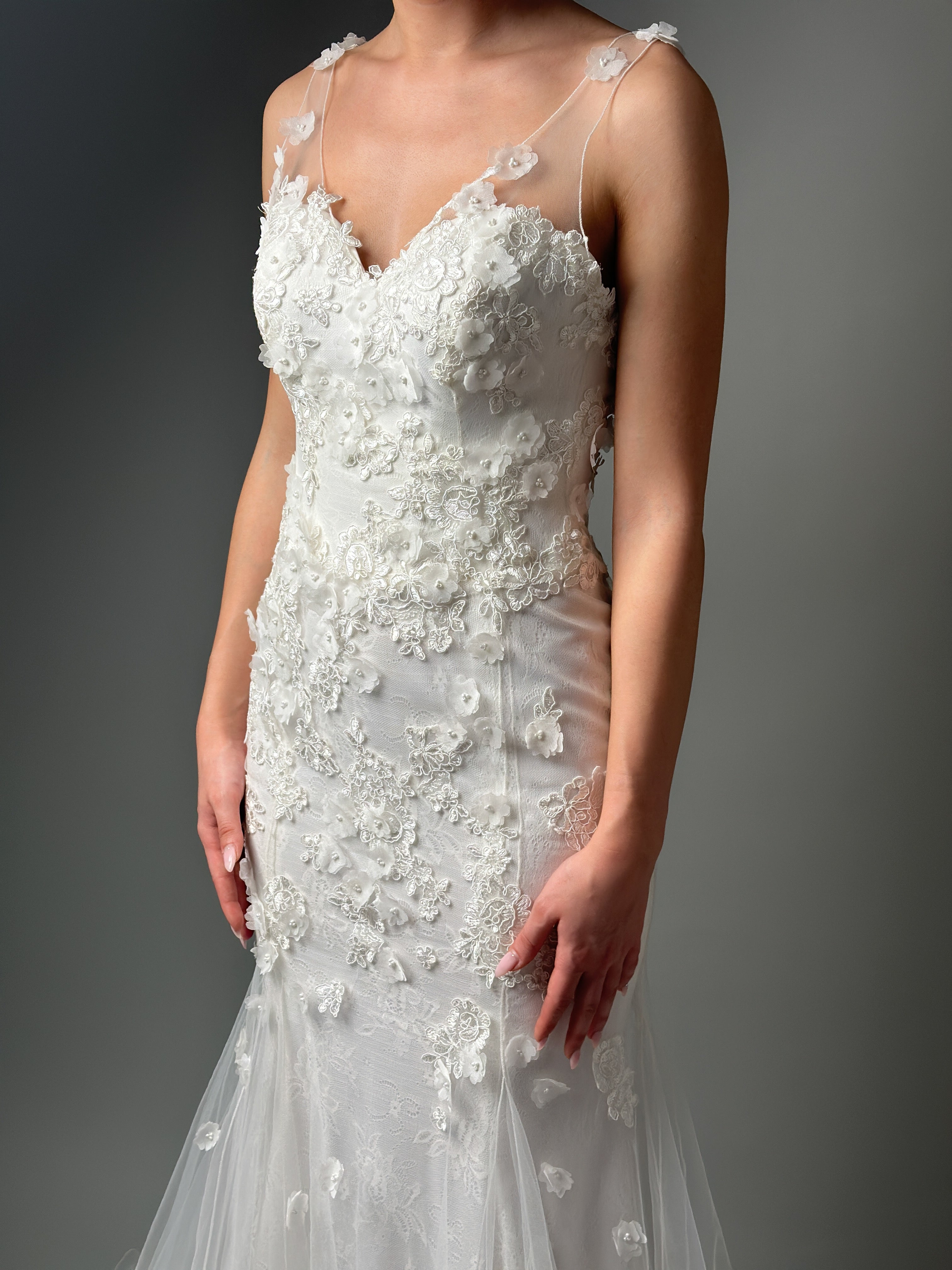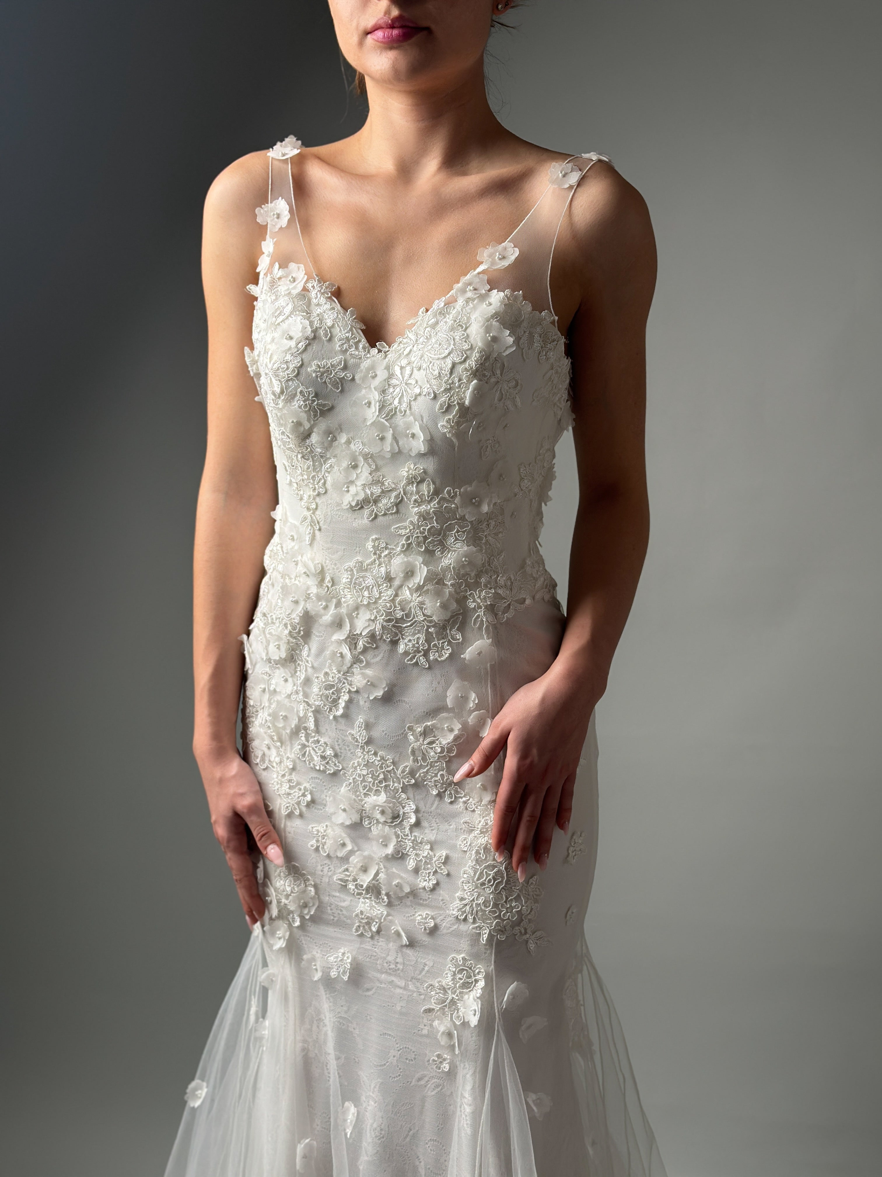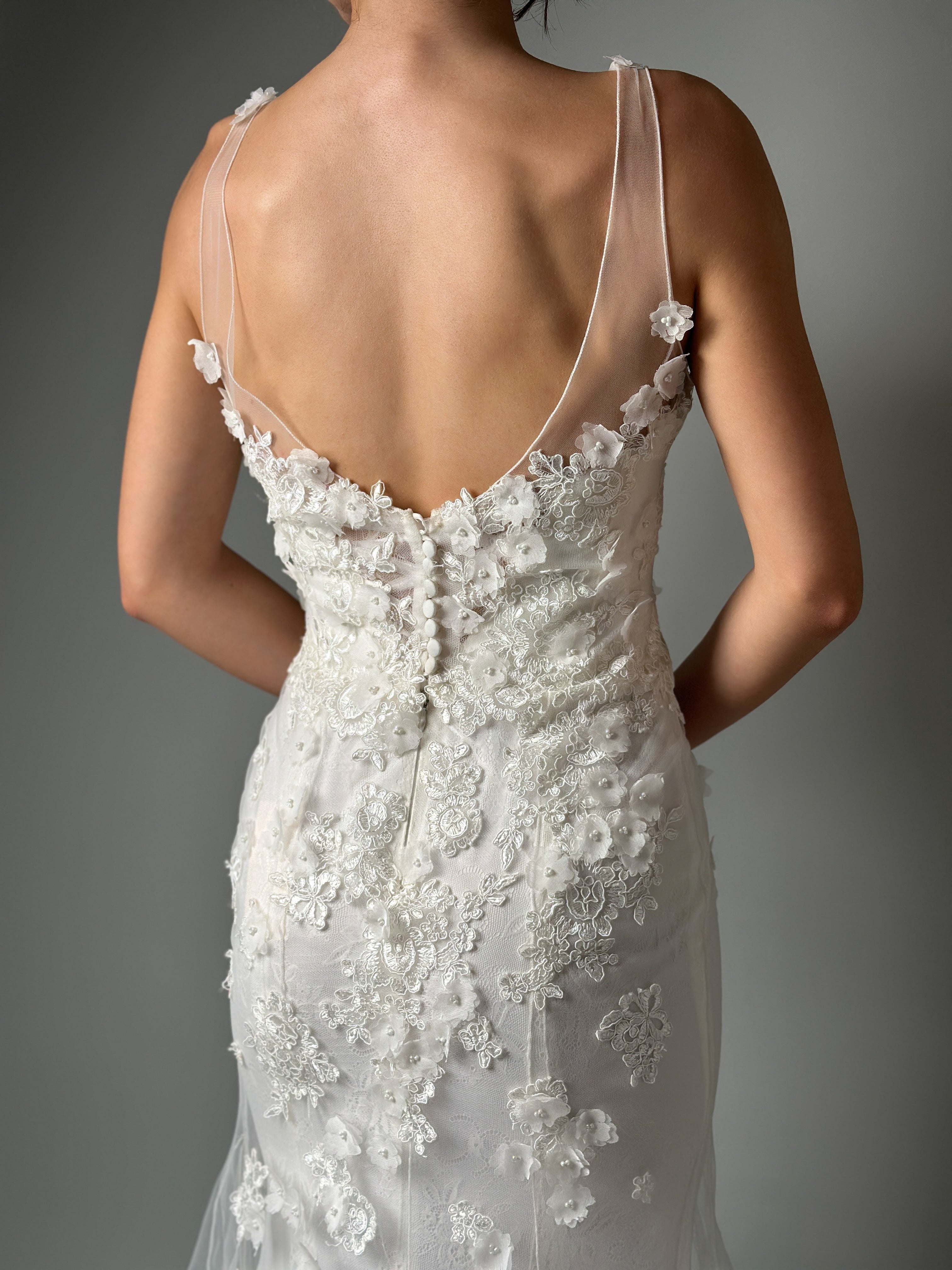 Make your wedding day unforgettable with our V Neck Mermaid Lace Wedding Dress feauring Open Back that beautifully accentuates your silhouette. This floral lace boho gown combines timeless romance with a modern edge, ensuring you feel both sexy and sophisticated. Ready to ship in size XS. *Both the length and the size will be tailored to your exact measurements, making sure the dress will fit you perfectly.