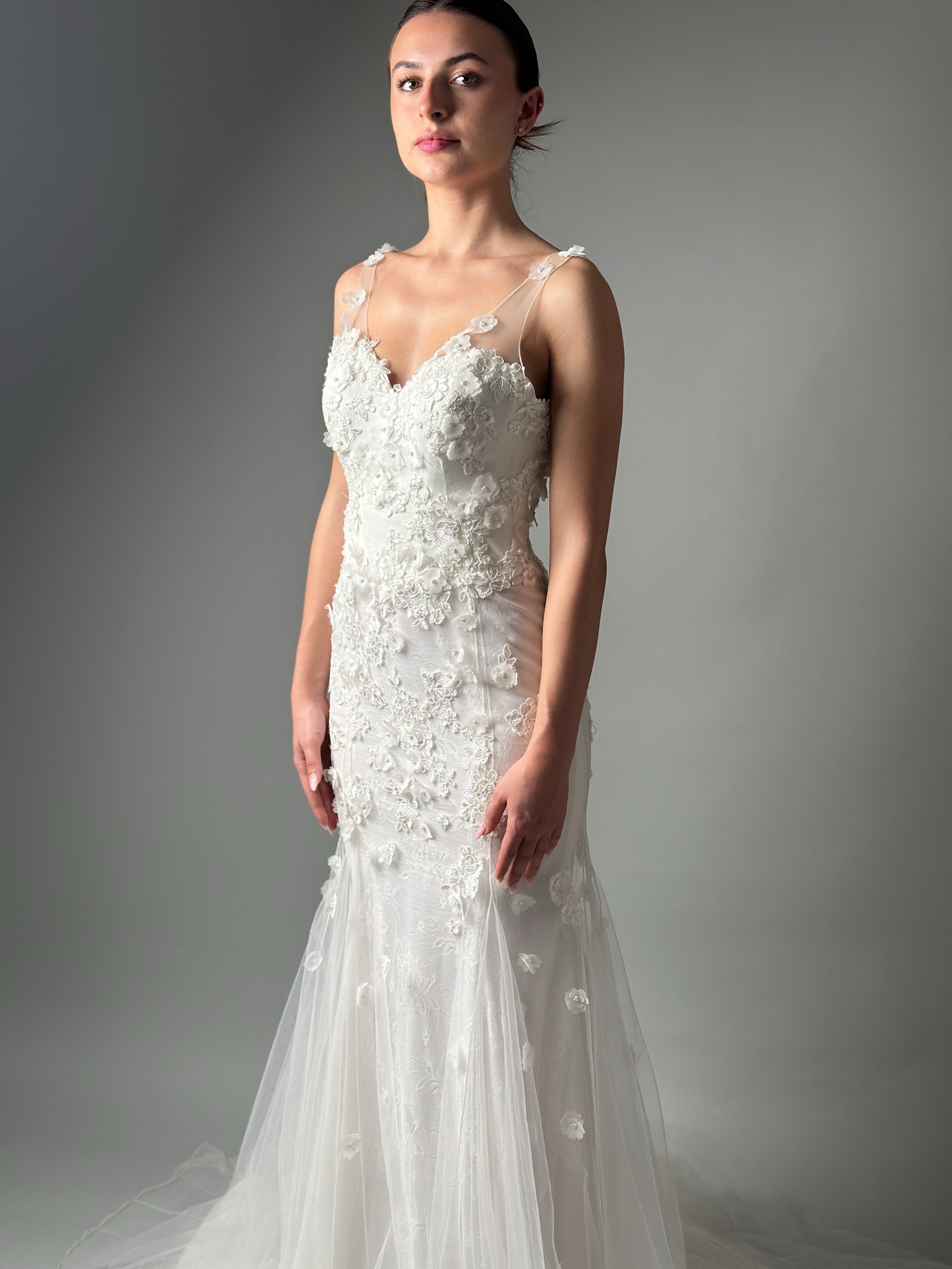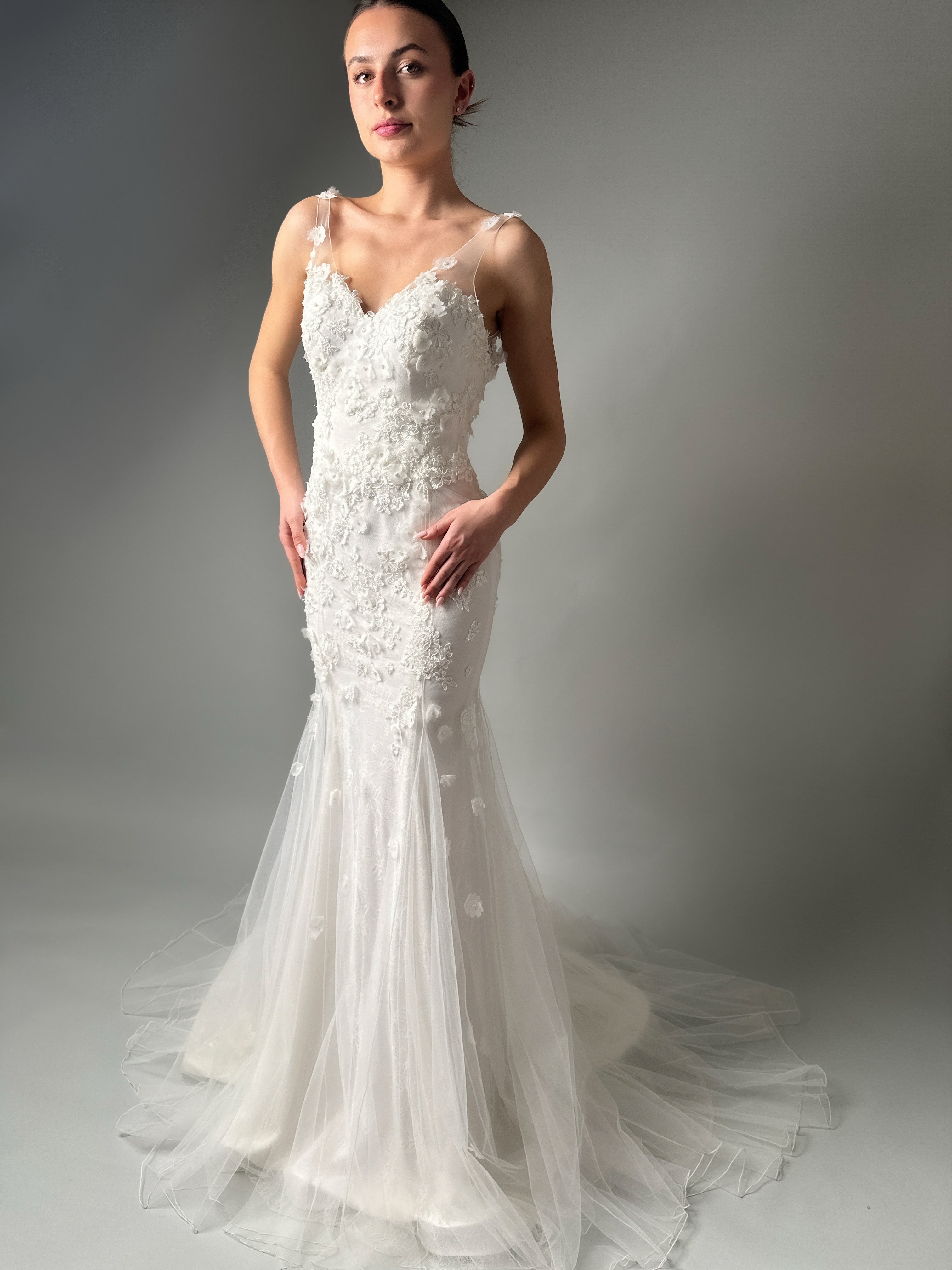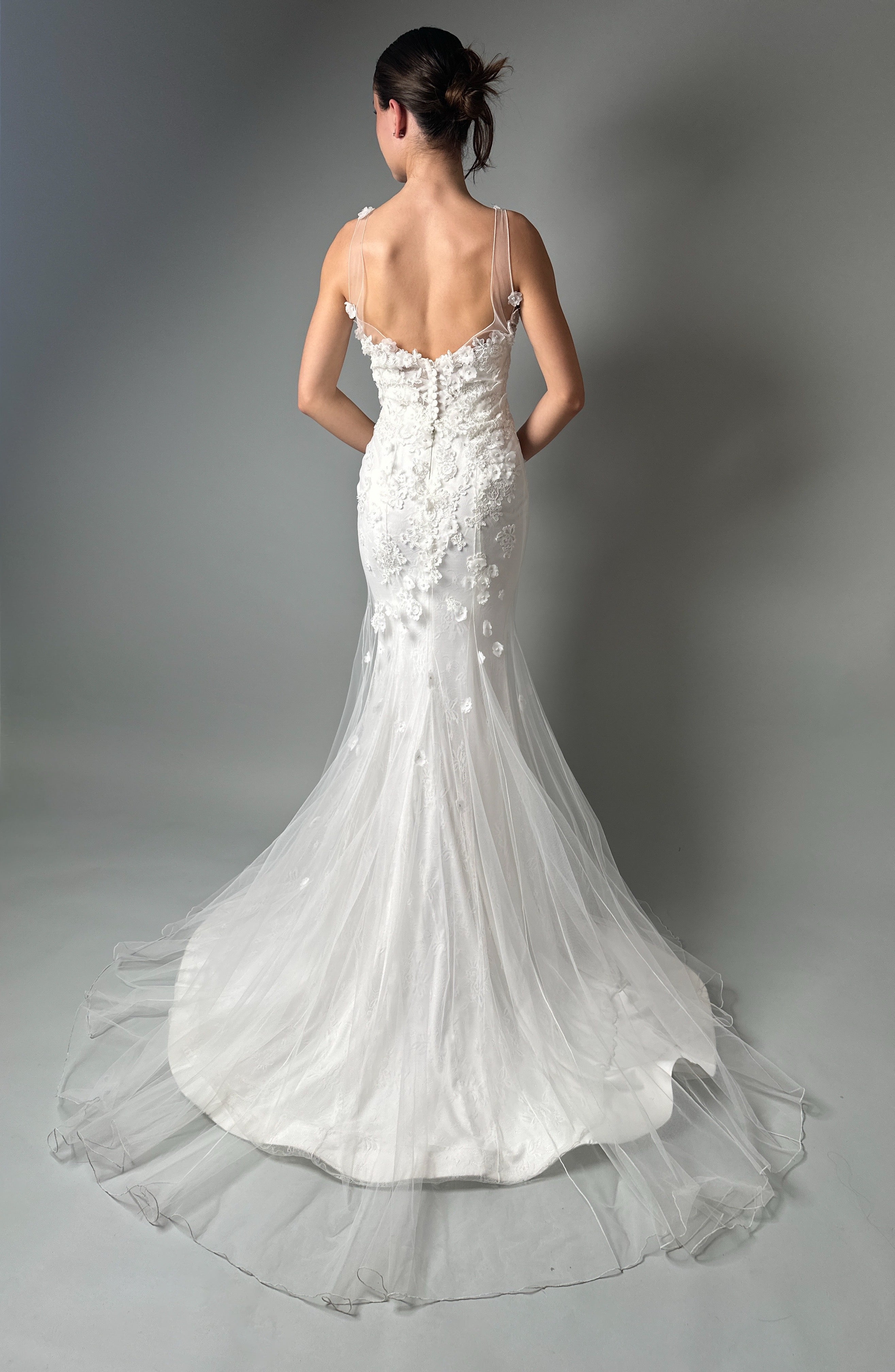 Make your wedding day unforgettable with our V Neck Mermaid Lace Wedding Dress feauring Open Back that beautifully accentuates your silhouette. This floral lace boho gown combines timeless romance with a modern edge, ensuring you feel both sexy and sophisticated. Ready to ship in size XS. *Both the length and the size will be tailored to your exact measurements, making sure the dress will fit you perfectly.