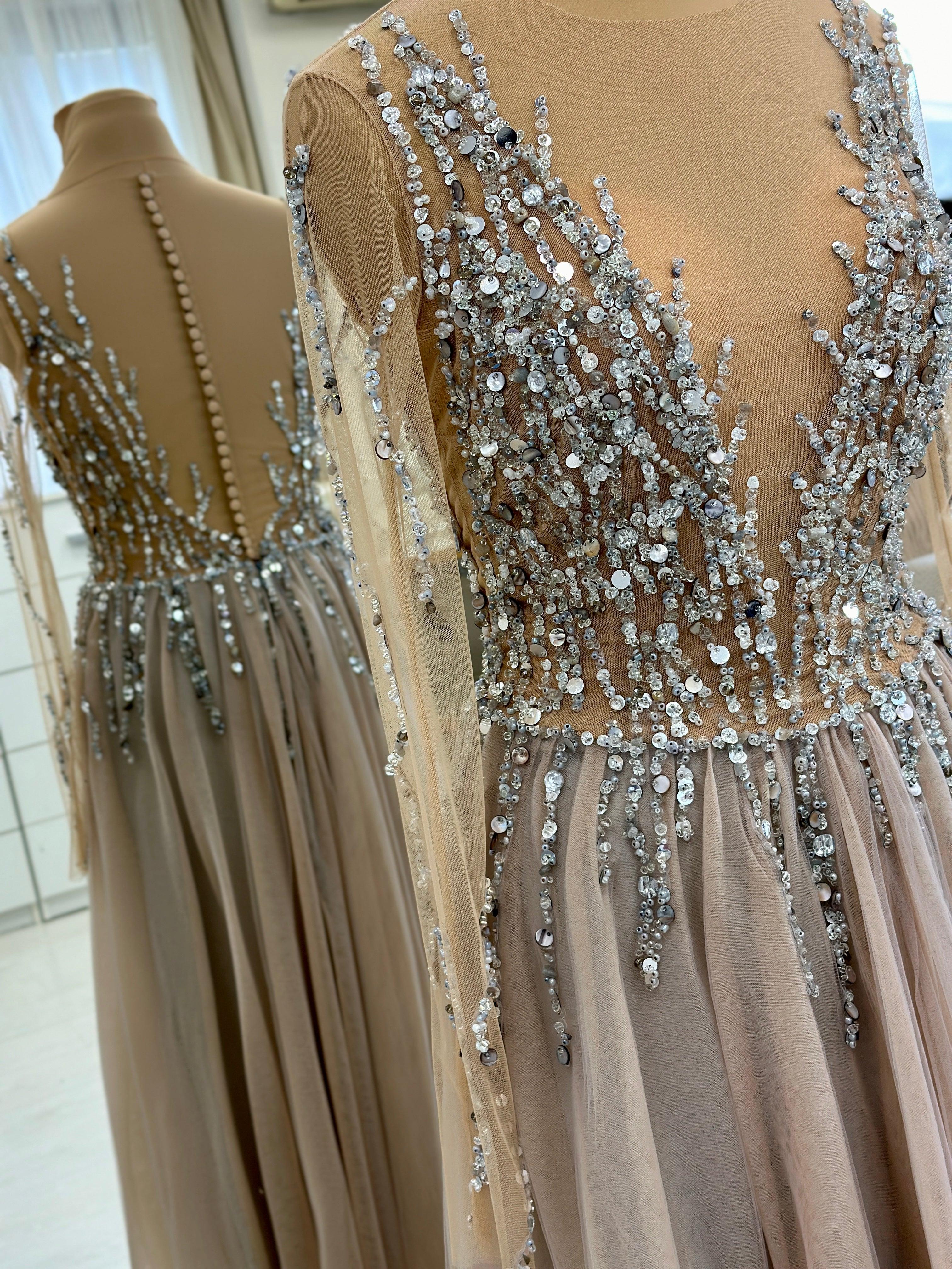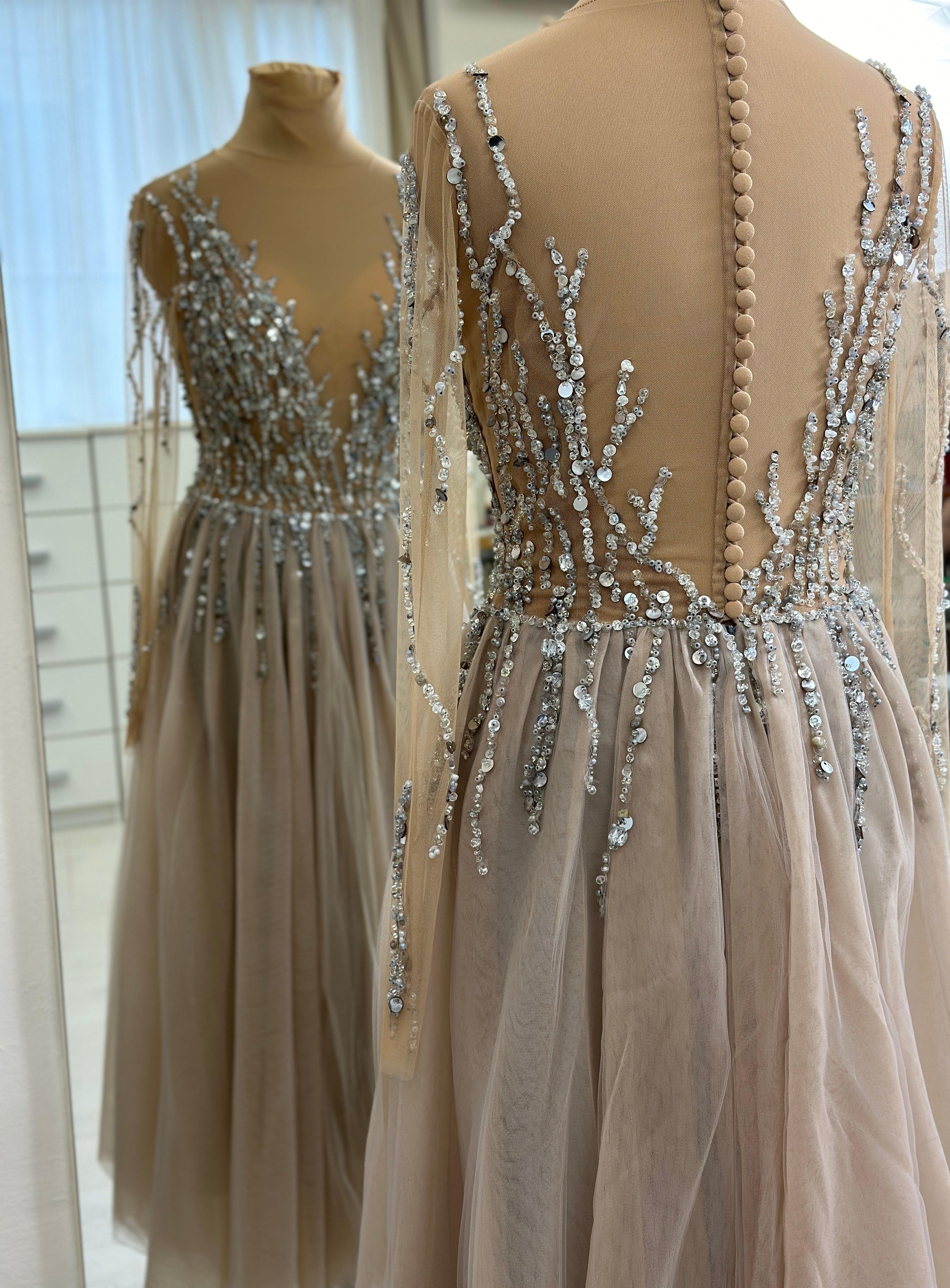 Introducing the epitome of elegance and sophistication, our exquisite gown embodies timeless allure with a modern twist. Crafted to mesmerize and enchant, this dress is a symphony of meticulous craftsmanship and luxurious design.