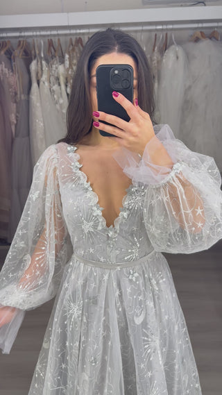 CLEARANCE | Celestial Unique Boho Wedding Dress in gray - Dresses Dioma