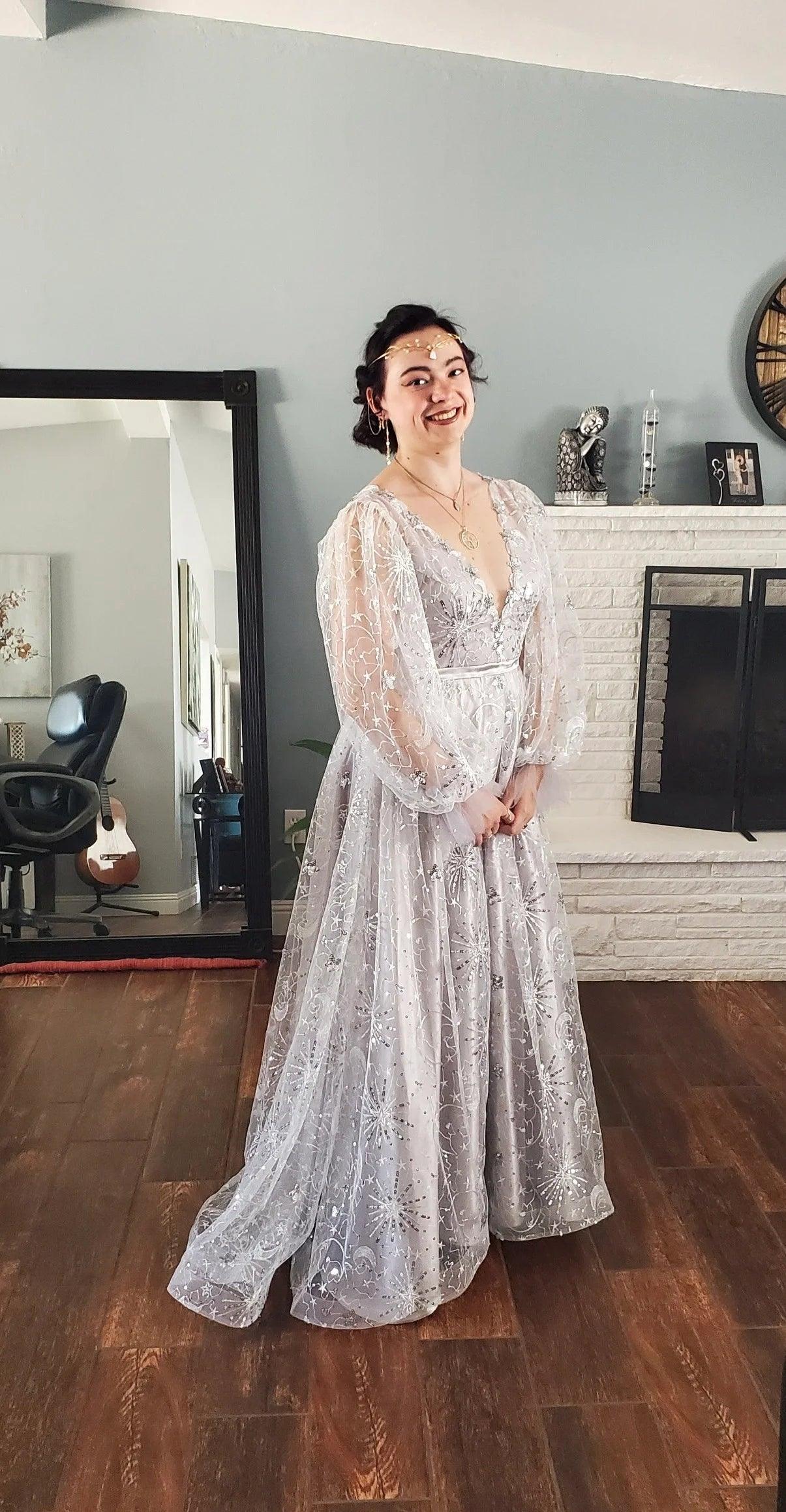 CLEARANCE | Celestial Unique Boho Wedding Dress in gray